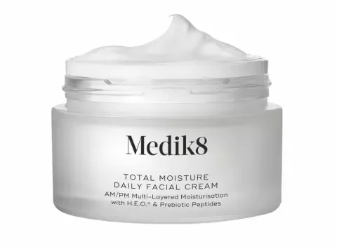 • 5. Total Moisture Daily Facial Cream od Medik8 – Lehký krém poskytující až 24hodinovou hydrataci díky prebiotickým peptidům, lipidům, ceramidům a kyselině hyaluronové. Cena okolo 1850 Kč/50 ml.