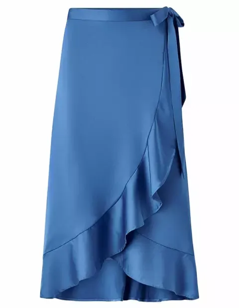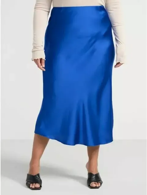 Elegantně rozšířená sukně z lesklého materiálu skvěle vynikne ve spojení s bílou košilí. Dlouhé sezóny v trendové modré.