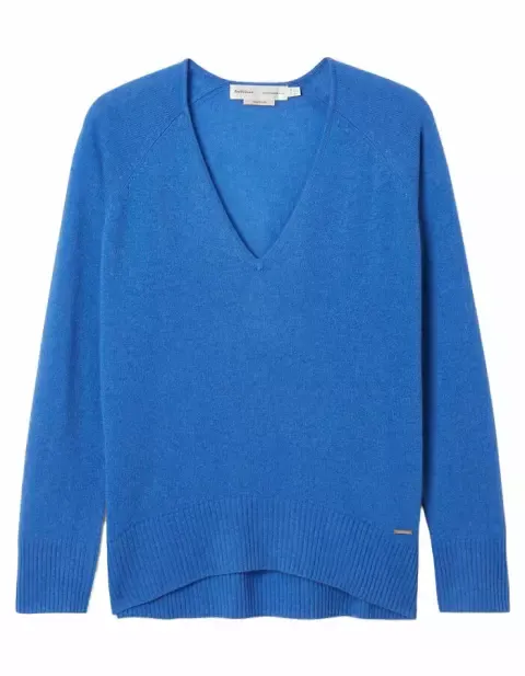 Kašmírový svetr v dokonale syté modré oceníte na jaře i během chladných večerů u Vltavy.
